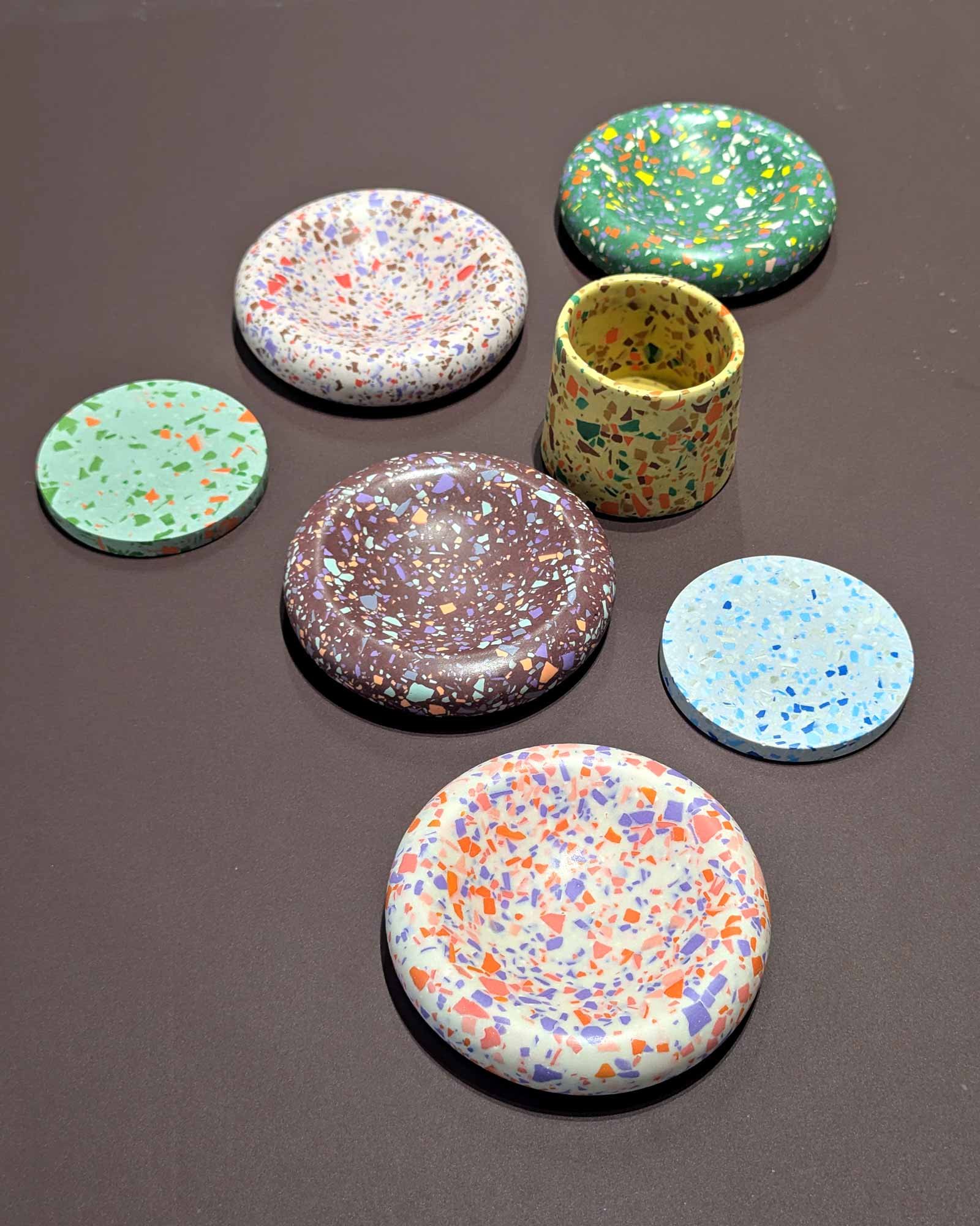Terrazzo Workshop: Die Kinder gestalten ein kleineres Objekt und können sich mit Farben und Formen austoben. Das fertige Terrazzo-Unikat wird anschließend mit nach Hause genommen.