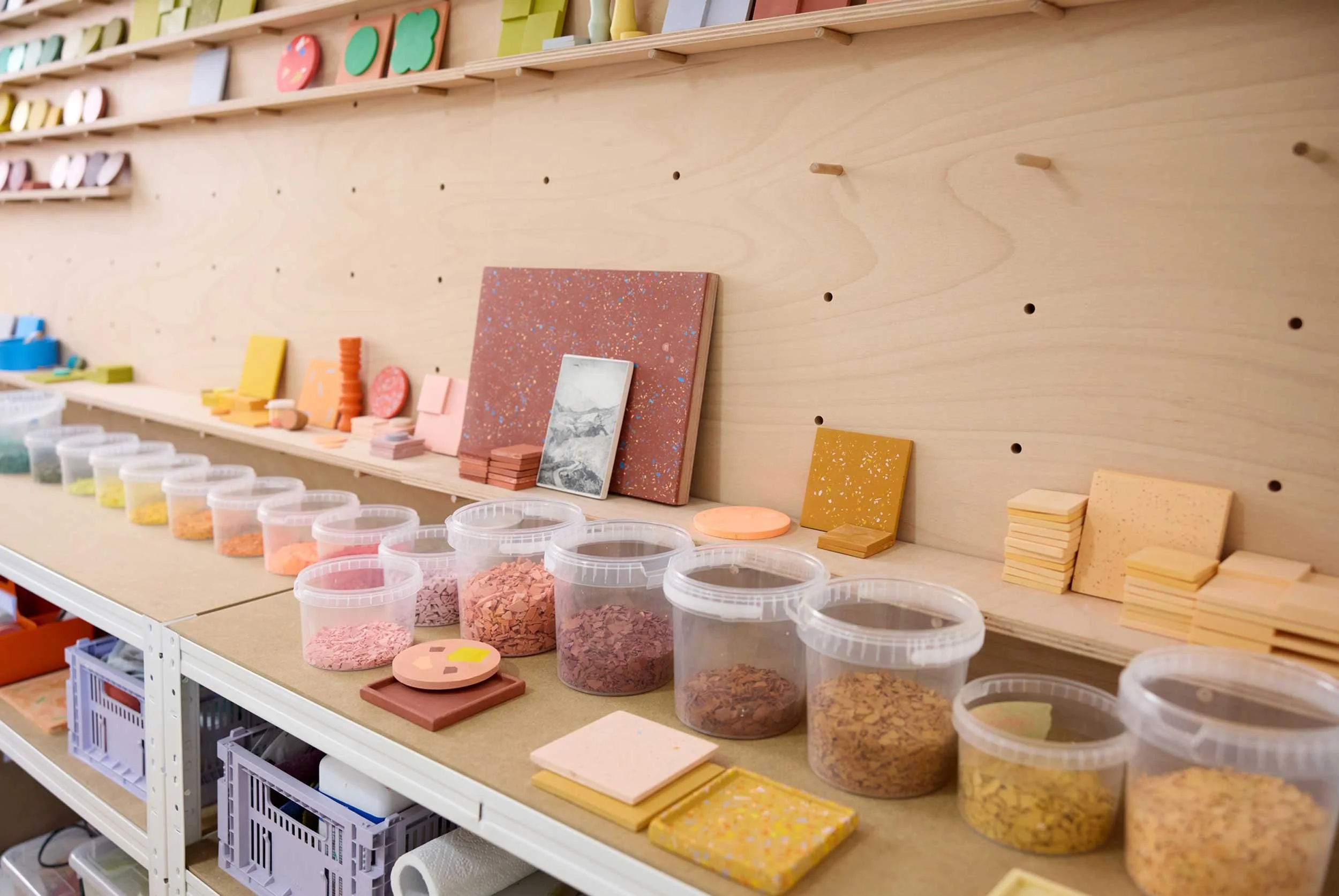 In den Workshops lernst du das Terrazzo Handwerk kennen, arbeitest mit Farben und Formen und gestaltest dein eigenes Unikat.